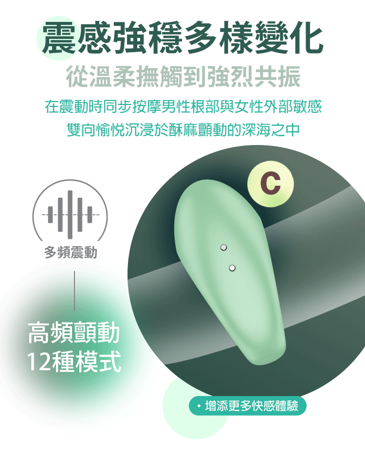 12 種震動模式:從溫柔撫動到強烈顫動,隨心掌控節奏。